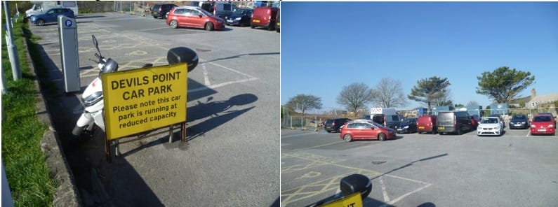 On a recent trip to the Stonehouse peninsula, I found that the Devil’s Point car park had been reduced to 20 places (+ a few disabled ones). This situation is likely to continue for several months as the old reservoir is converted to extra parking. Hopeful parkers are directed to the car park by Stonehouse Bridge, rather than the Cremyll Ferry one.