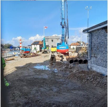 Enough grumbling. Continuing eastward around the shore, I find piling has now started, noisily, on the Rusty Anchor site at the end of Millbay Marina Village.