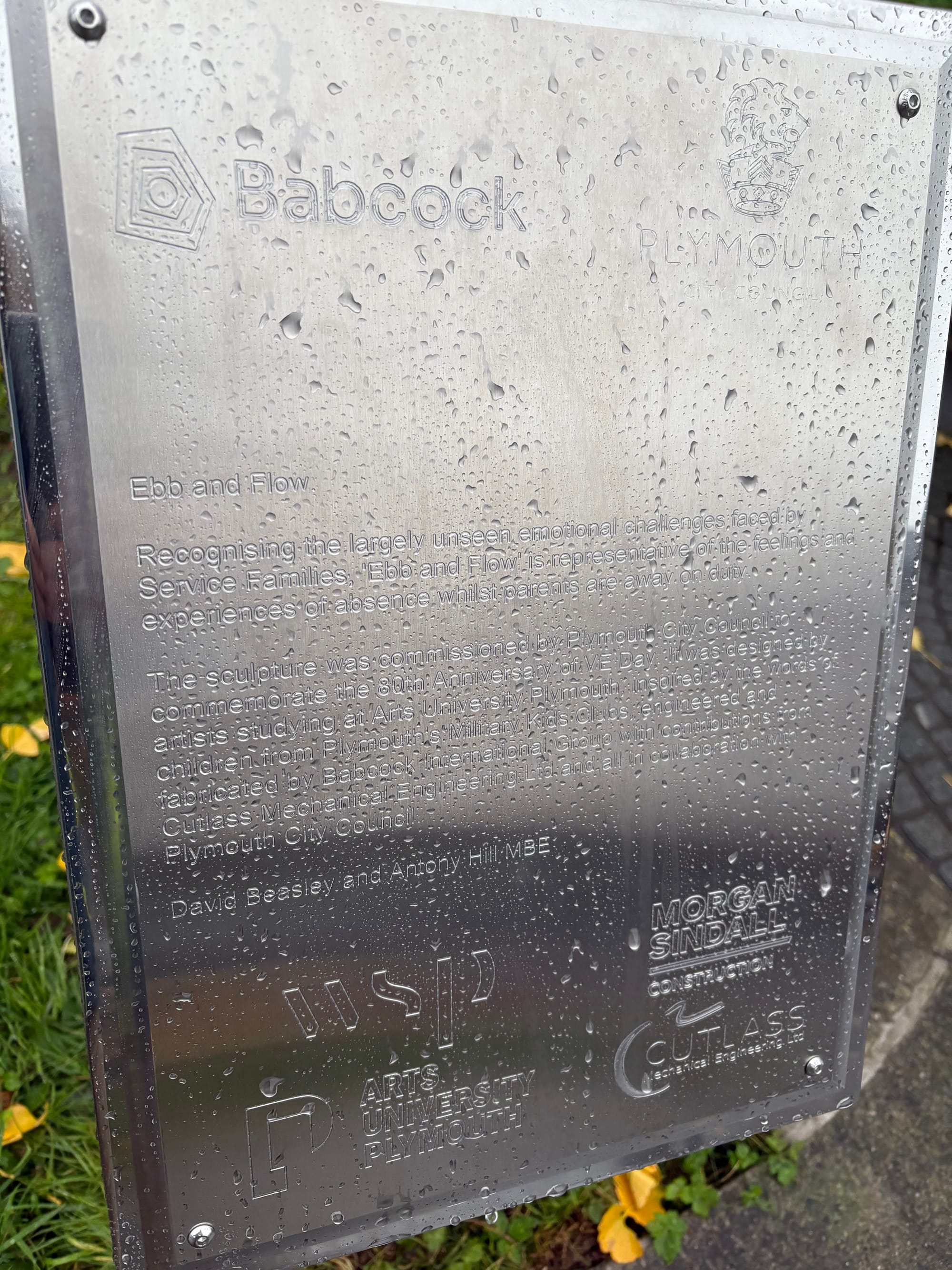 Ebb and Flow was formerly put on show outside the Civic Centre today (Tuesday). In due course it will move to a new permanent home planned to be in the Peace Garden on The Hoe.