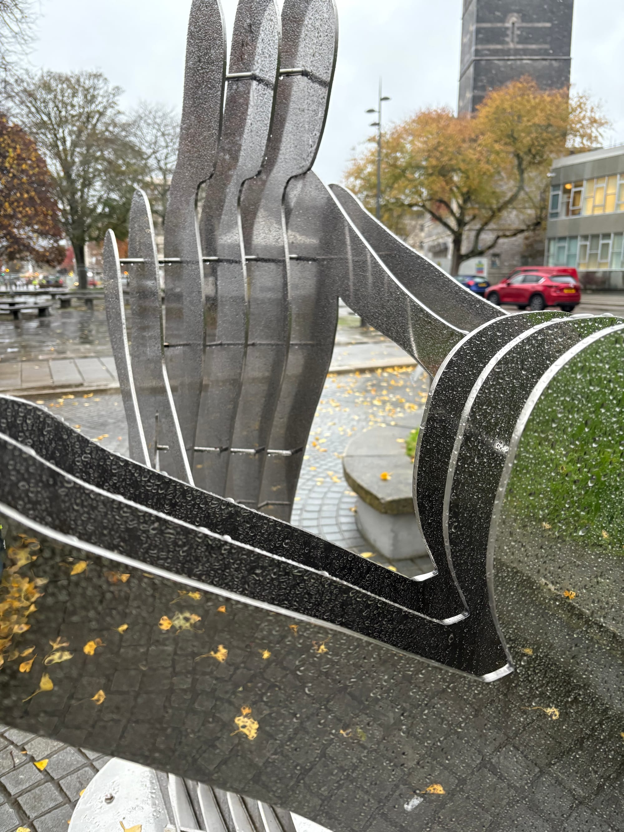 The sculpture is called ‘Ebb and Flow’, and was created by student artist David Beasley, a former Royal Air Force engineer.